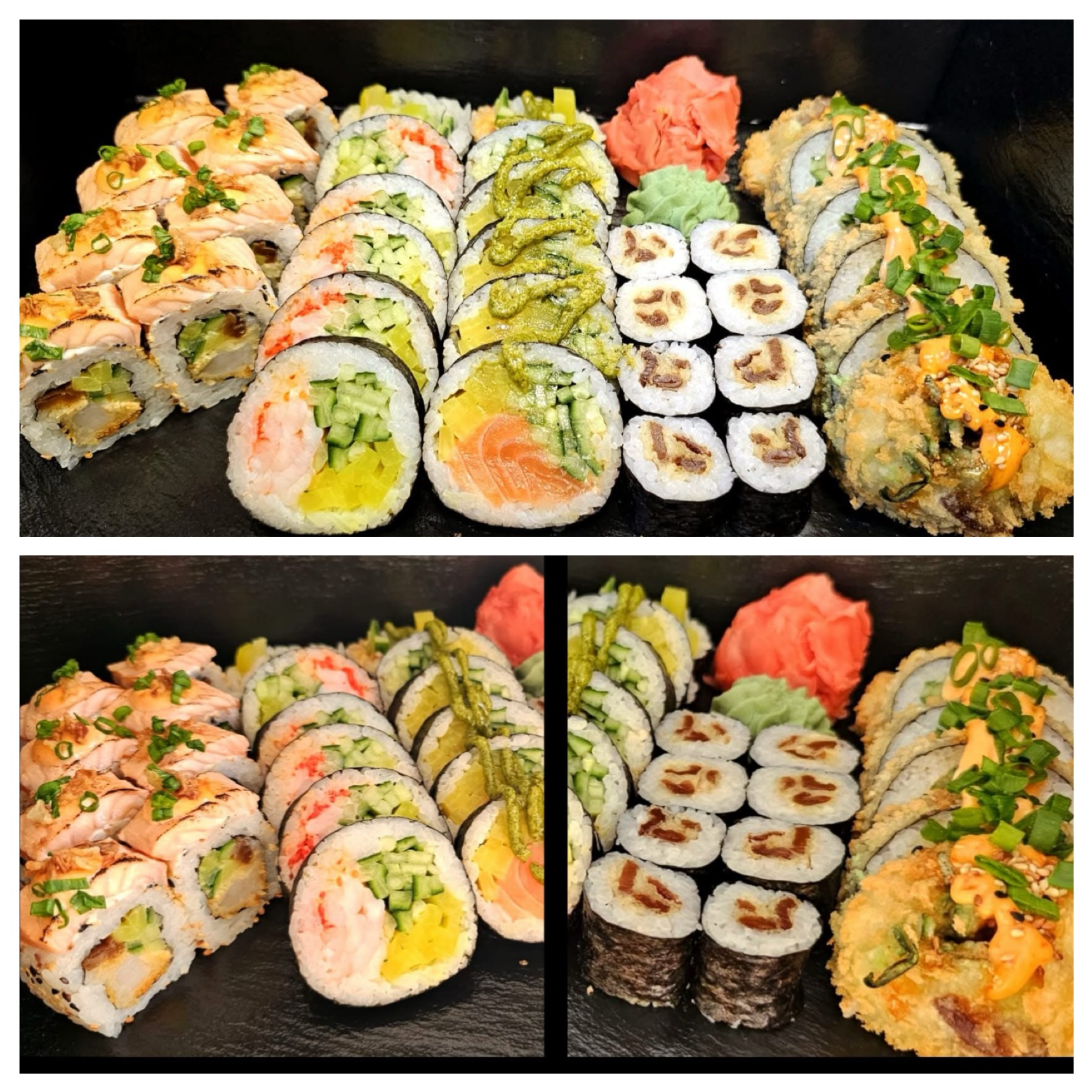 Do wyboru – Pieczony łosoś, Surowy łosoś, Tatar z łososia, Sałatka z krewetki, Sałatka z paluszka krabowego, Krewetka w tempurze